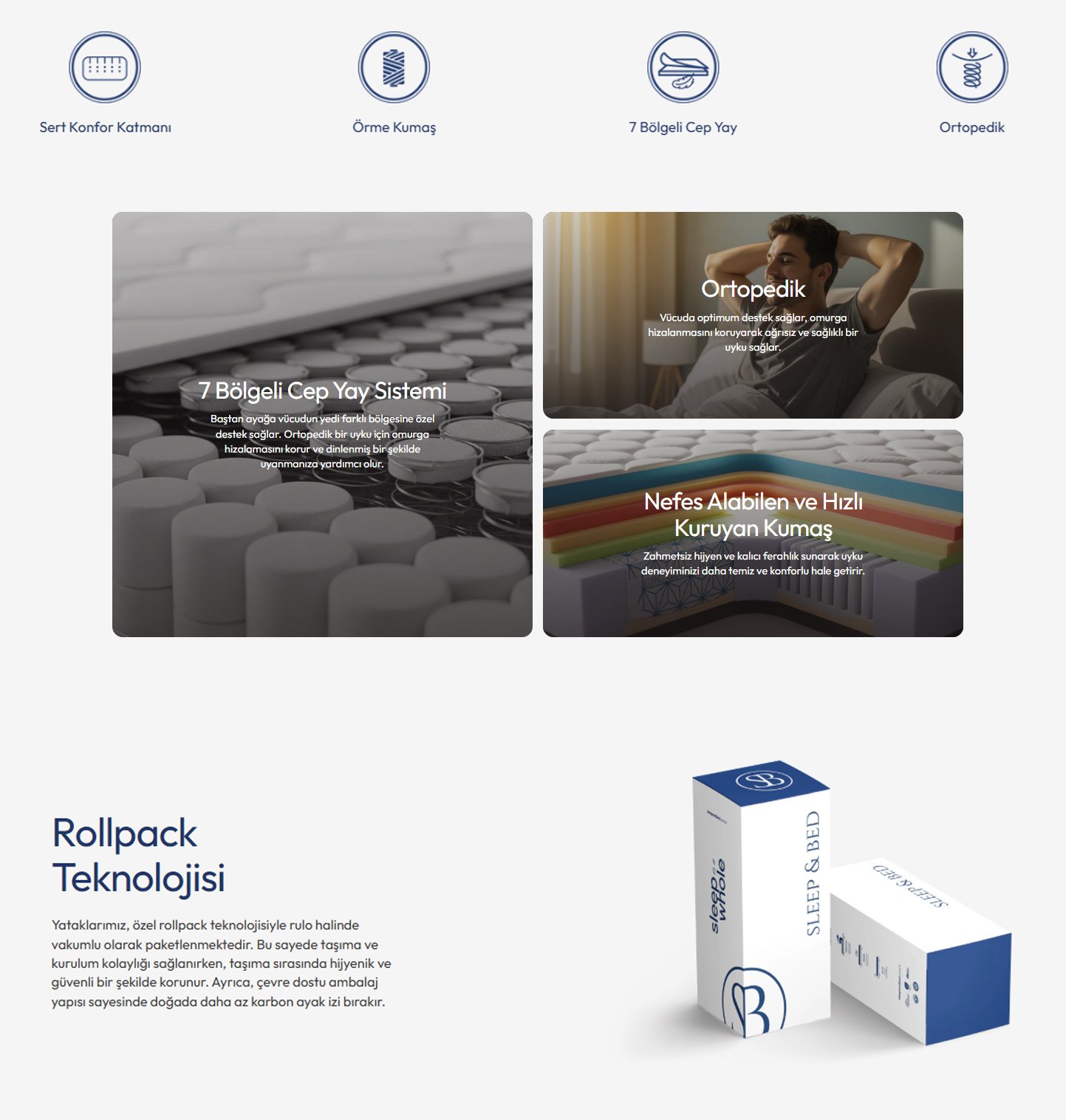 – Yüksek yoğunluklu sünger katmanlar; çökme yapmadan uzun ömürlü konfor.